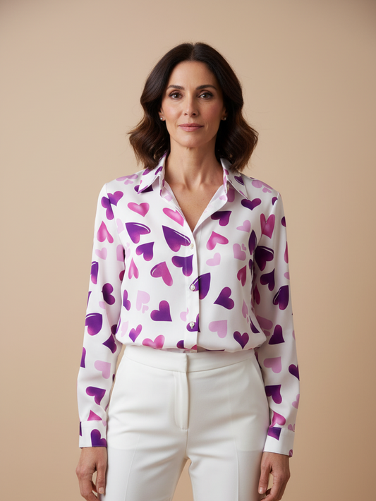 Camisa satinada estampado corazones morados