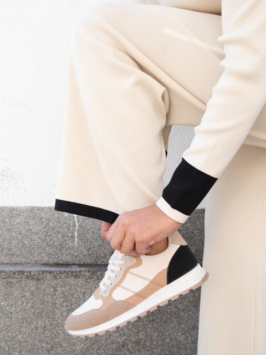 Pantalón de tricot con bajo a contraste blanco marfil