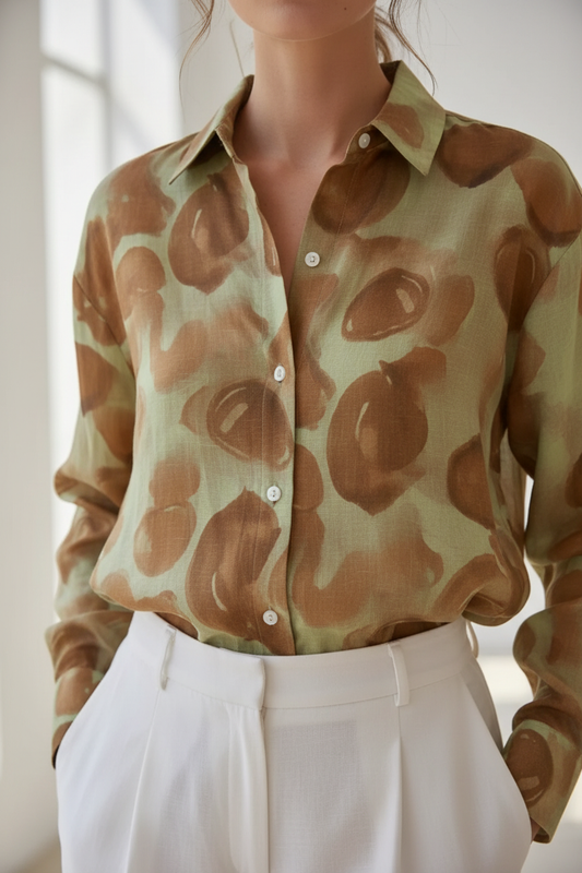 Camisa estampado de acuarela verde y camel