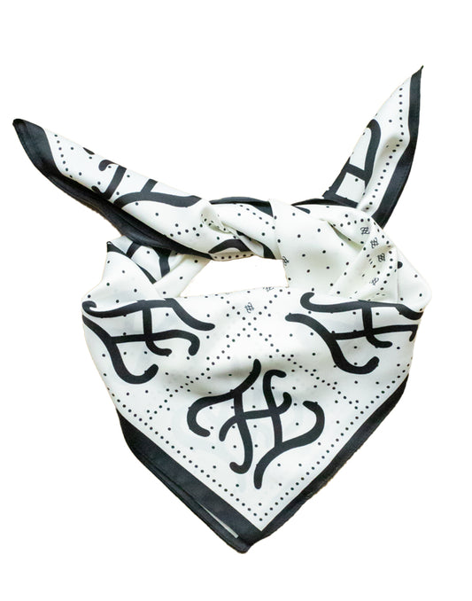 Pañuelo de seda con puntos y monograma en blanco y negro