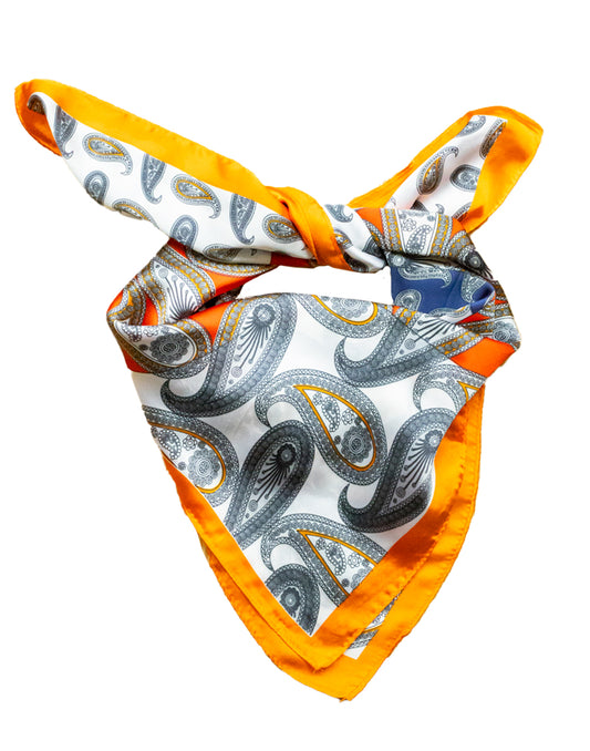 Pañuelo de seda con estampado paisley naranja y azul