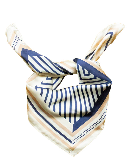 Pañuelo de seda con líneas geométricas azul marino