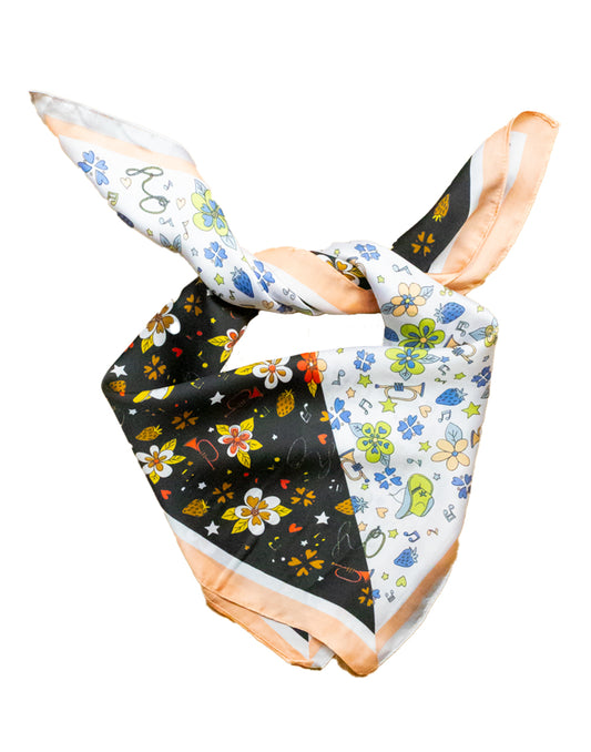 Pañuelo de seda con estampado botánico bicolor negro