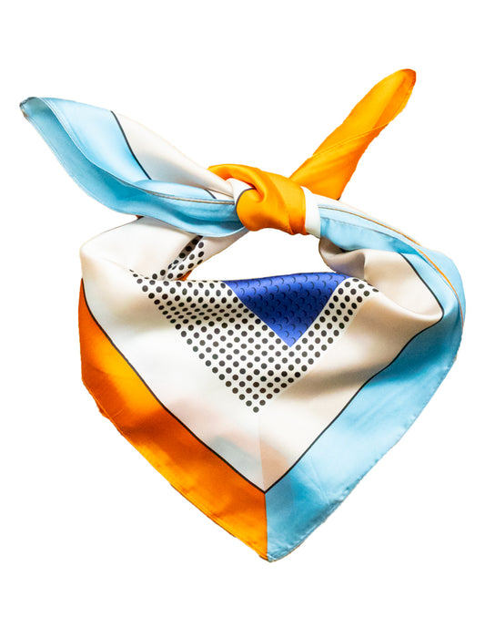 Pañuelo de seda con estampado de cuadros abstracto naranja y azul