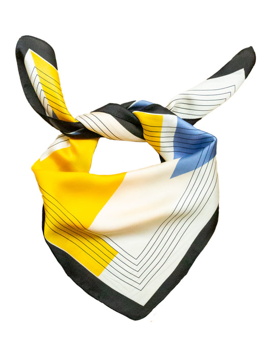 Pañuelo de seda con estampado geométrico en zigzag amarillo y azul