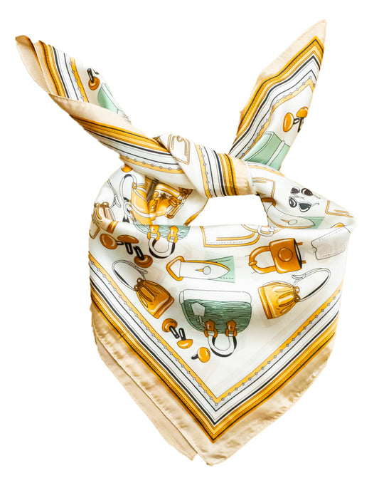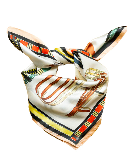 Pañuelo de seda con inspiración de marroquinería ecuestre beige