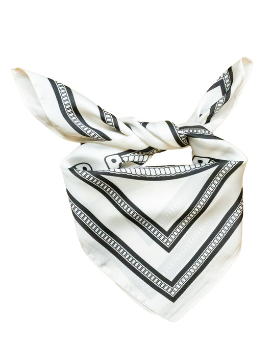 Pañuelo de seda con diseño ecuestre y herraduras entrelazadas blanco y negro