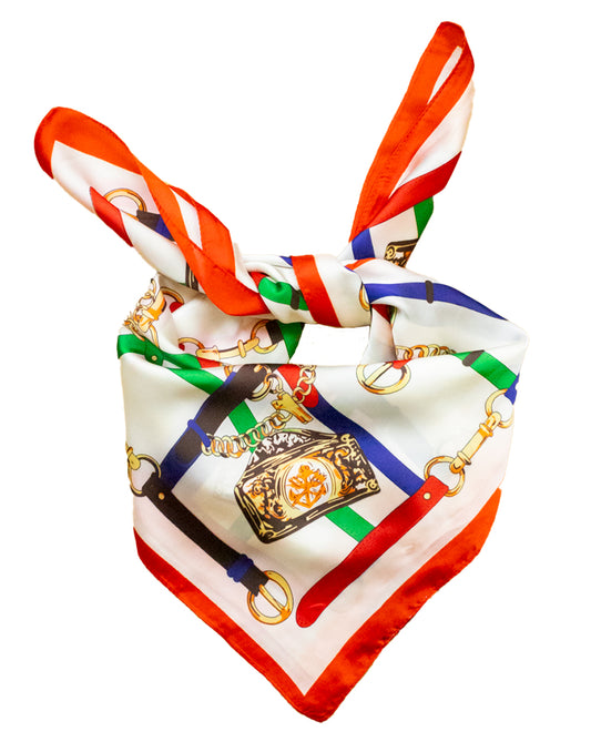Pañuelo de seda con cinturones y cadenas de inspiración ecuestre multicolor