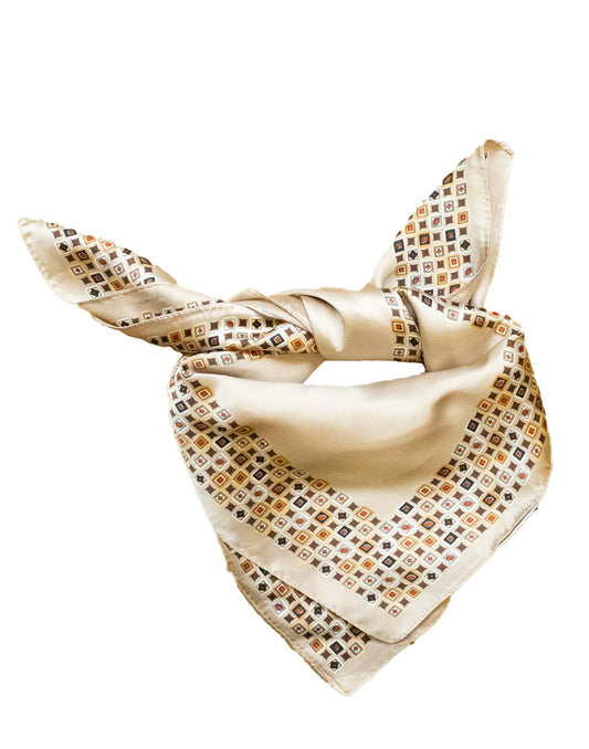 Pañuelo de seda con borde de mosaico sobre fondo beige