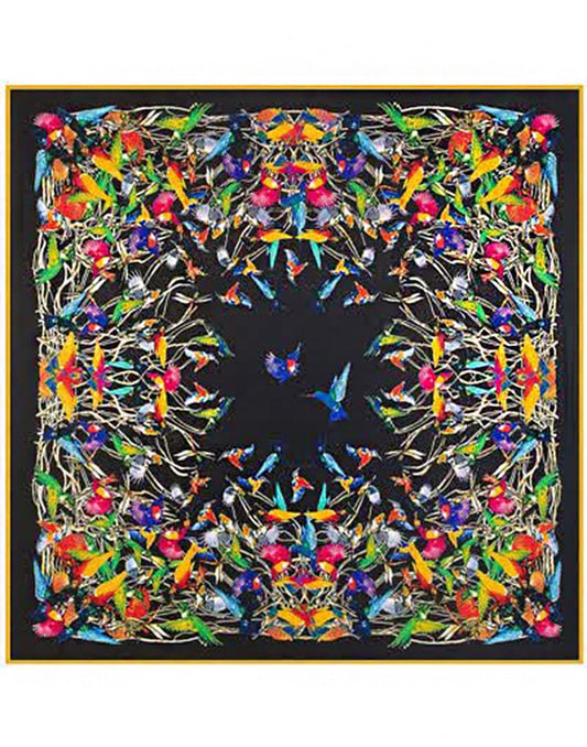 Pañuelo de seda colibrís azul marino