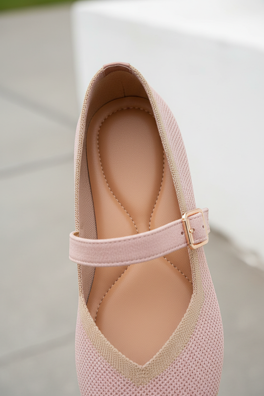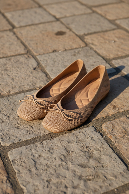 Bailarina tejido de punto beige con lazo