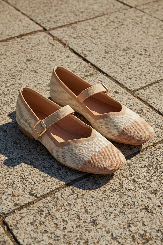 Bailarina tejido de punto bicolor marfil y camel