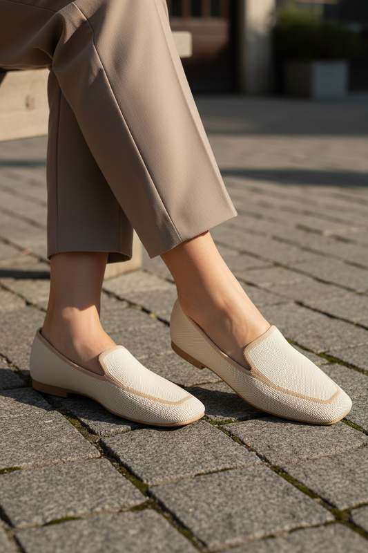 Mocasines tejido de punto bicolor marfil y camel