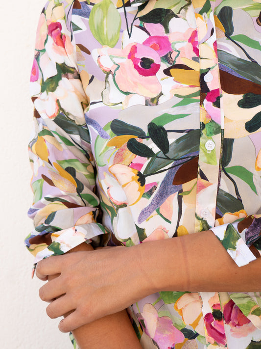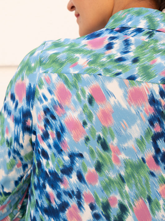 Camisa fluida clásica estampado psicodélico azul y rosa