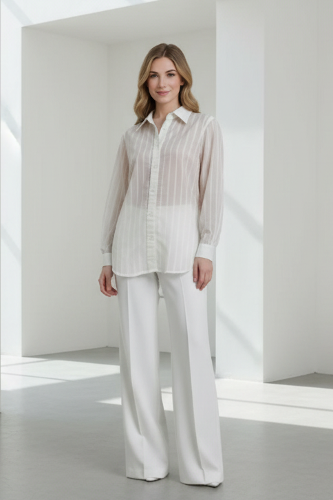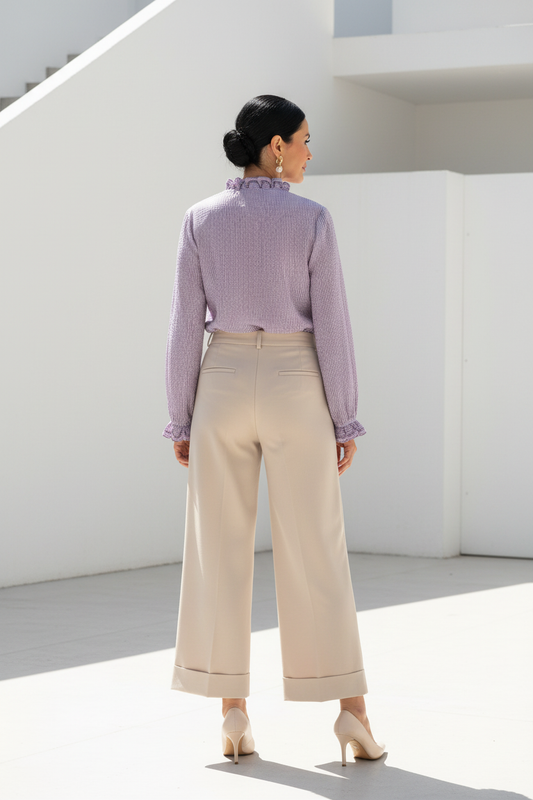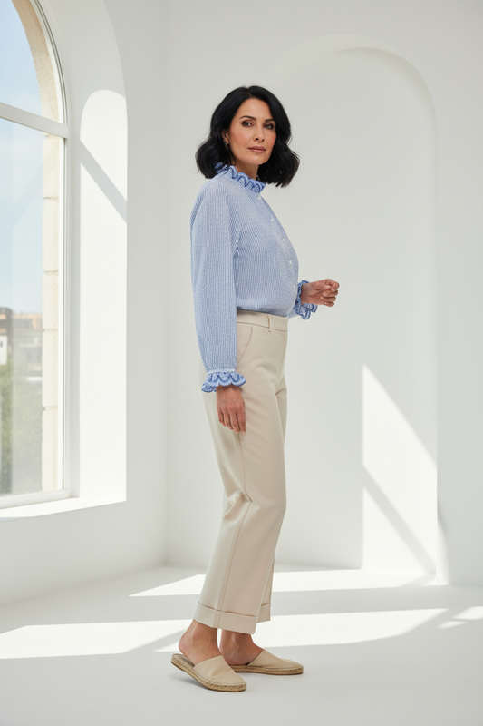 Pantalón recto tobillero con vuelta en el tobillo beige