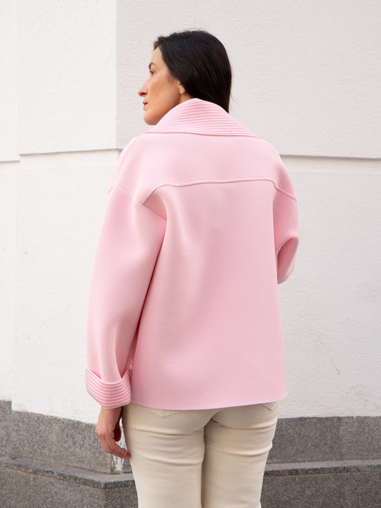 Chaquetón de neopreno con forro de rayas rosa pastel