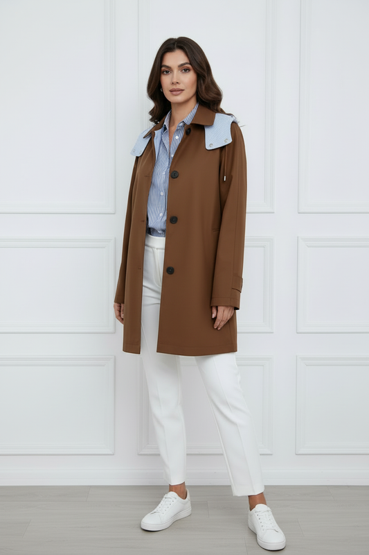Gabardina marrón chocolate con capucha