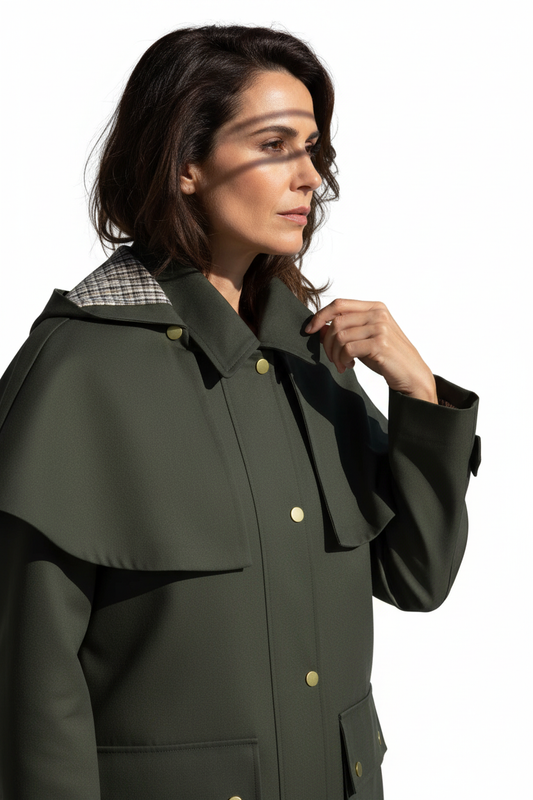 Gabardina con capa y capucha desmontable verde