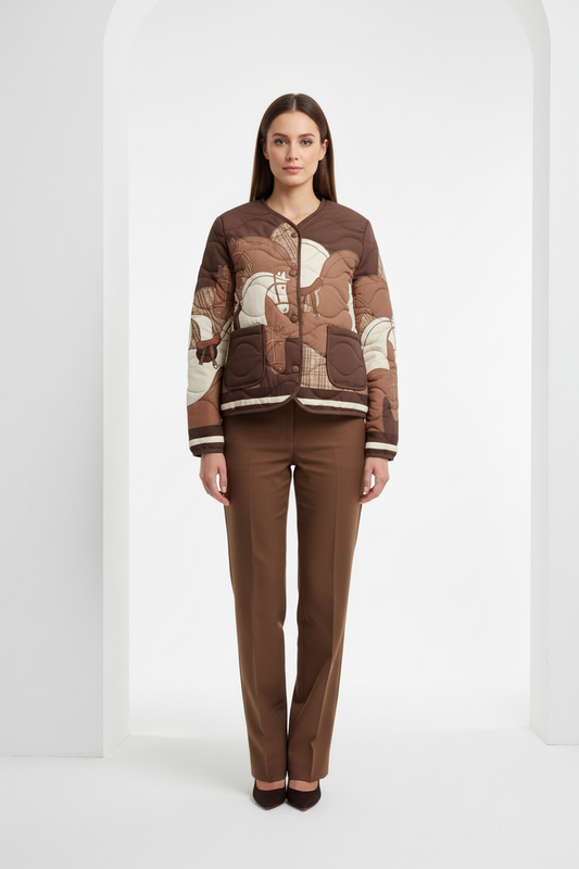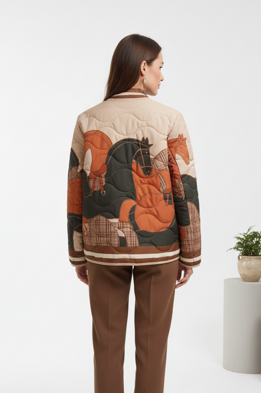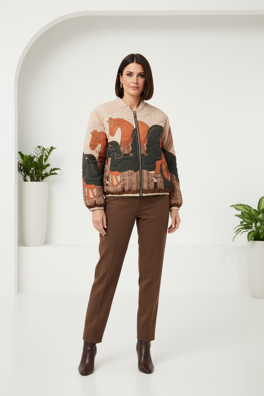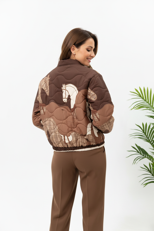 Chaqueta bomber acolchada estampado caballo marrón