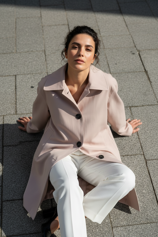 Gabardina recta rosa empolvado