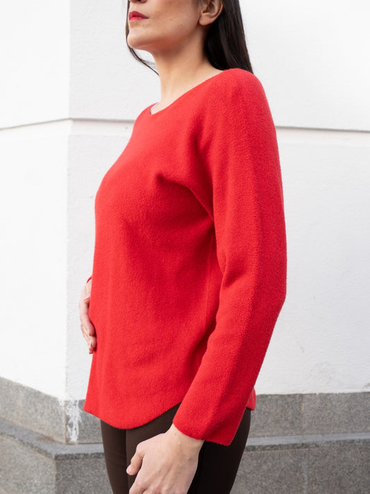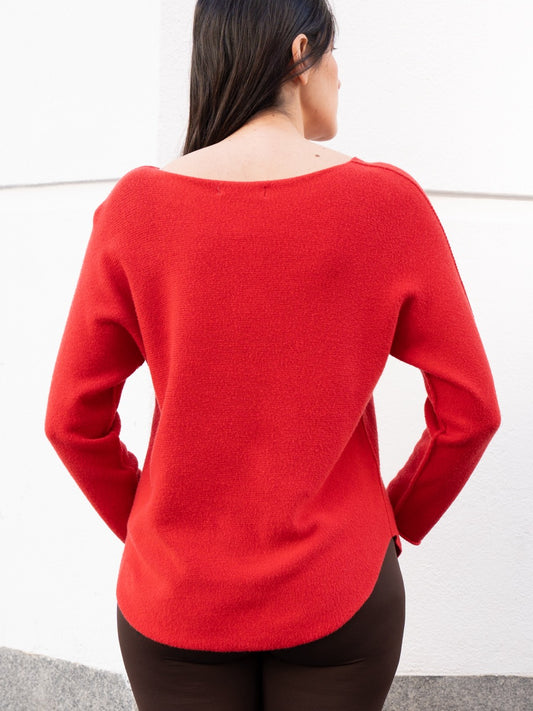 Jersey recto sin costuras cuello barco rojo