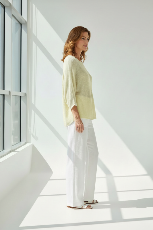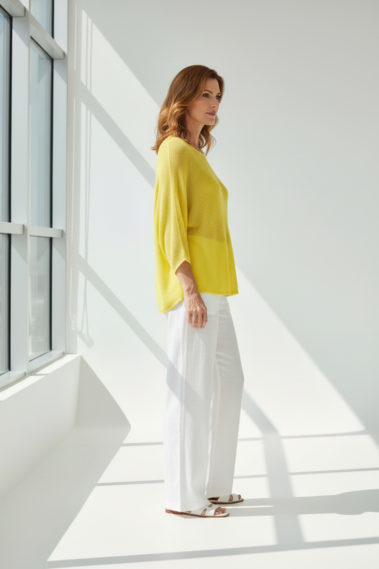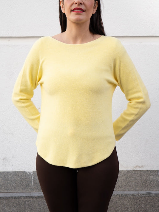 Jersey recto sin costuras cuello barco amarillo mantequilla