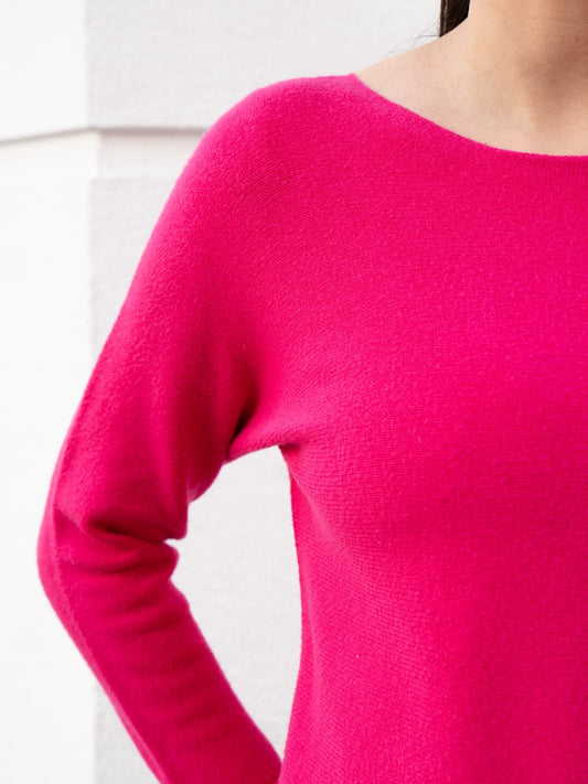 Jersey recto sin costuras cuello barco rosa fuerte