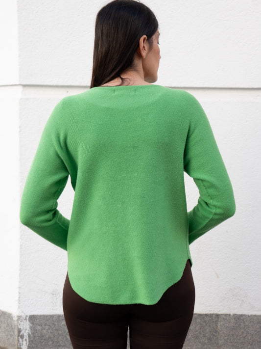 Jersey recto sin costuras cuello pico verde manzana