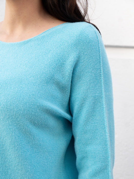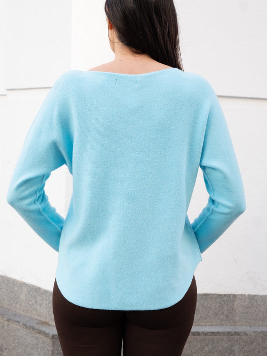 Jersey recto sin costuras cuello barco azul turquesa