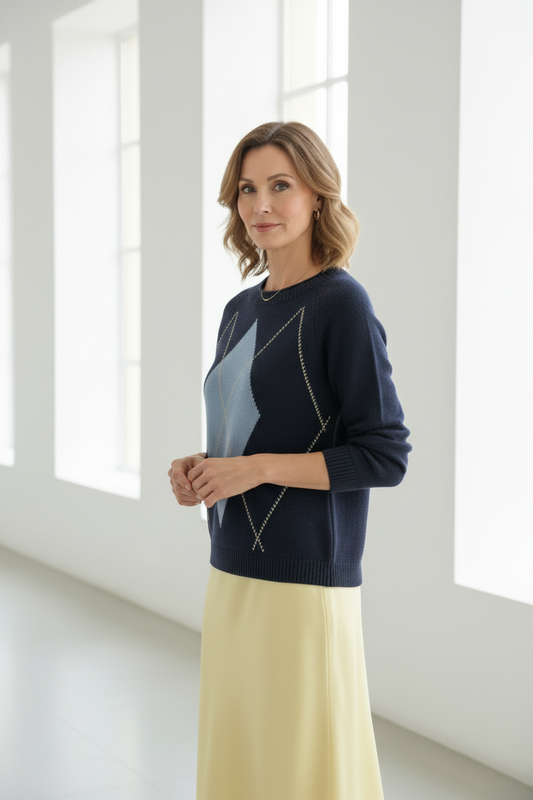 AgotadoJersey de rombo azul marino