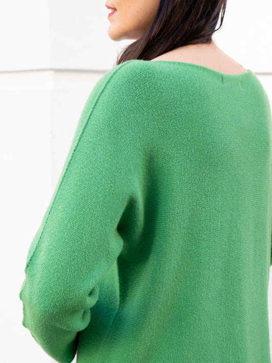 Jersey recto sin costuras cuello barco verde manzana