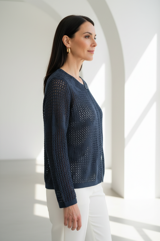 Chaqueta calada con flores en azul marino