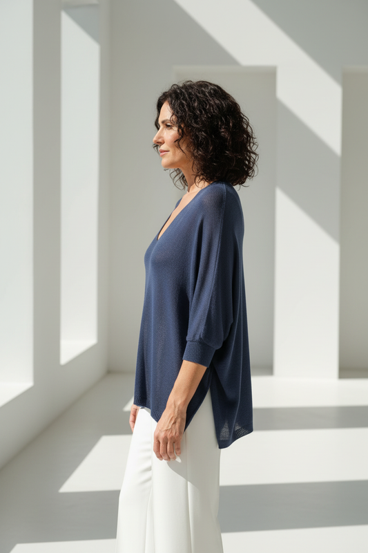 Jersey azul marino de cuello pico